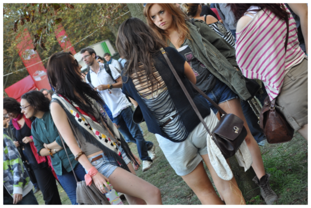 Début juillet, Werchter et les Ardentes ont été d’excellents terrains de jeux pour décrypter ce qui se faisait en matière de looks rock. Ce week-end, c’est au festival parisien Rock en Seine que j’ai été prendre la température modesque. 108.000 personnes se sont données rendez-vous sur le Domaine national de Saint-Cloud pour se mettre du bon son plein les oreilles! L’humidité ambiante et le sol boueux n’ont pas fait oublié qu’un look de festival se travaille avec autant (si pas plus!) de minutie qu’une tenue pour assister à un défilé en front row. Un exercice auquel se prêtent particulièrement bien les très jeunes filles, dont la peau de bébé nous fait penser qu’elles devaient regarder Toy Story 1 (1995) dans le ventre de leur mère! L’an prochain, Rock en Seine fêtera ses 10 ans. Rendez-vous est déjà fixé les 24, 25 et 26 août 2012 pour une nouvelle édition haute en couleur!