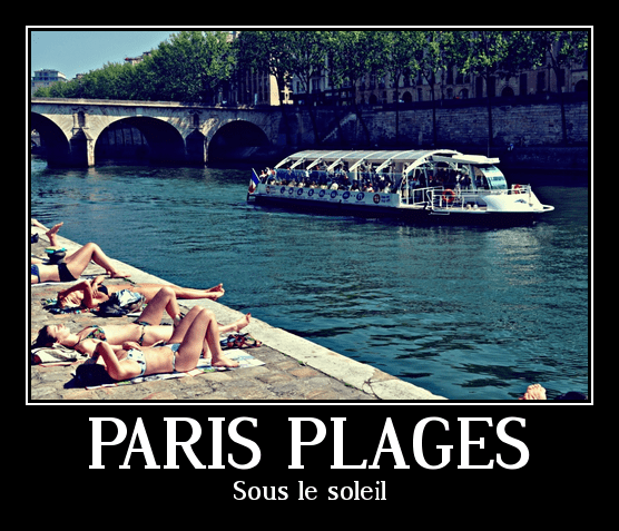 Et bien, rien de tout ça évidemment! A Paris Plages, ambiance bon enfant garantie. Tout est pensé pour que les vacances à la ville soient un vrai moment de plaisir. Ce n’est pas parce qu’on n’a pas l’occasion de sauter dans le premier avion pour le bout du monde qu’on ne peut pas se détendre. Entre les Fatboy sous les arbres, les transats au bord de Seine, les jeux de boules prêtés gracieusement, on oublie presque qu’on est dans Paris… Un concept de plage urbaine qui tend à se décliner dans bien d’autres villes (Bruxelles, Liège, Dijon, …).
