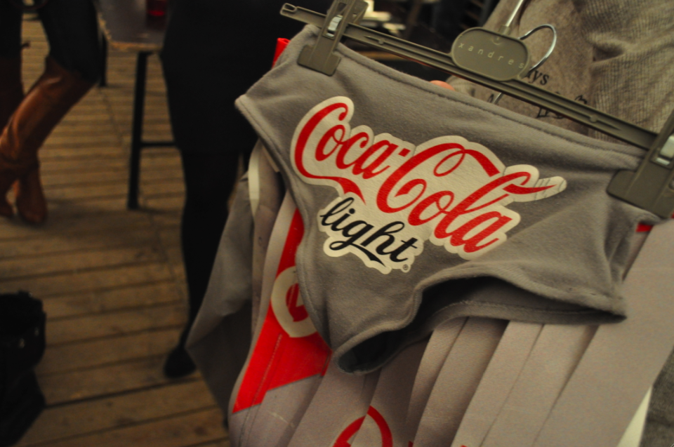 Autre idée remarquable, l’initiative de Coca-Cola Light (partenaire de l’évènement) de demander à ces jeunes stylistes belges de laisser leur créativité s’exprimer et de donner leur propre interprétation de cette marque féminine qu’est Coca-Cola Light. Au-delà de nombreux partenariats avec des designers prestigieux et mondialement reconnus, le géant américain s’attache à soutenir les jeunes talents. Pour Customisez-Moi, Coca-Cola Light a ainsi offert l’opportunité aux finalistes de l’évènement de créer une silhouette customisée pour les 3 girls de Coca-Cola light: Eleanor la fashionista, Bernadette la romantique et Irène la party girl. Tout cela sur base d’une série d’accessoires, gadgets, vêtements et matériaux fournis par la marque à chacun des participants. A la clé, 3 chèques de 1.500€. Faisant partie du jury Coca-Cola Light, j’ai été impressionnée de voir comment de jeunes créateurs peuvent détourner une bâche, des bouteilles, des étiquettes,… pour en faire de parfaits sacs, soutien-gorge, jupes où encore des blousons trendy. Comme quoi, avec un peu d’imagination et d’enthousiasme, on peut aller très loin…