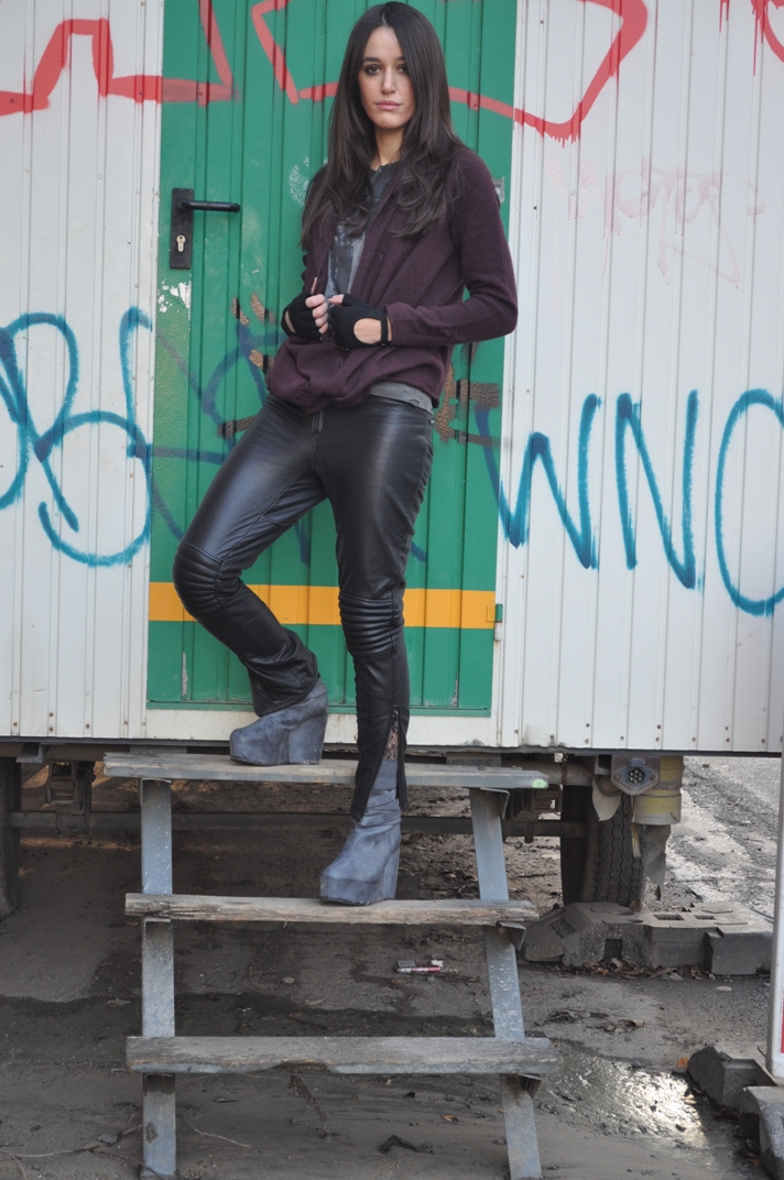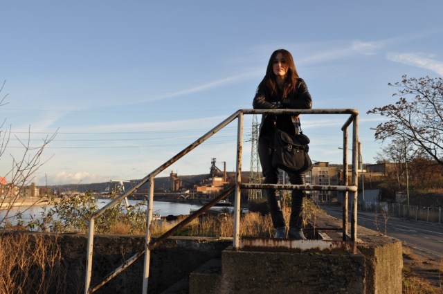 Urbaine, Rock & Chic… total look ! j’adore le côté Matrix glamour : ) Et puis bien vu pour le shooting en milieu industriel !