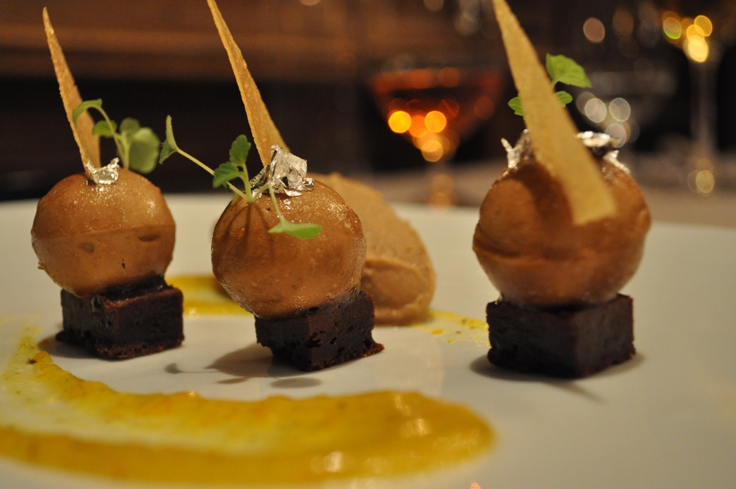 Les Etangs de Corot, c’est un véritable havre de paix situé aux portes de Paris. Imaginé comme un cocoon, l’établissement se compose d’un hôtel 4 étoiles habillé selon les goûts de la propriétaire des lieux, Alice Tourbier. Aucune chambre ne ressemble à une autre. Gros coup de coeur pour celle qui m’a été attribuée: balcon avec vue sur les étangs, effet de volume grâce à une estrade surélevant le bureau, éclairage tamisé, moquette au sol, grand lit très confortable, … Impossible de ne pas y dormir comme un bébé, surtout après avoir savouré un succulent repas au restaurant gastronomique Le Corot. Les photos que j’ai prises des plats parlent d’elles-mêmes et illustrent très bien le savoir-faire du jeune Chef, Rémi Chambard. Une très belle table.