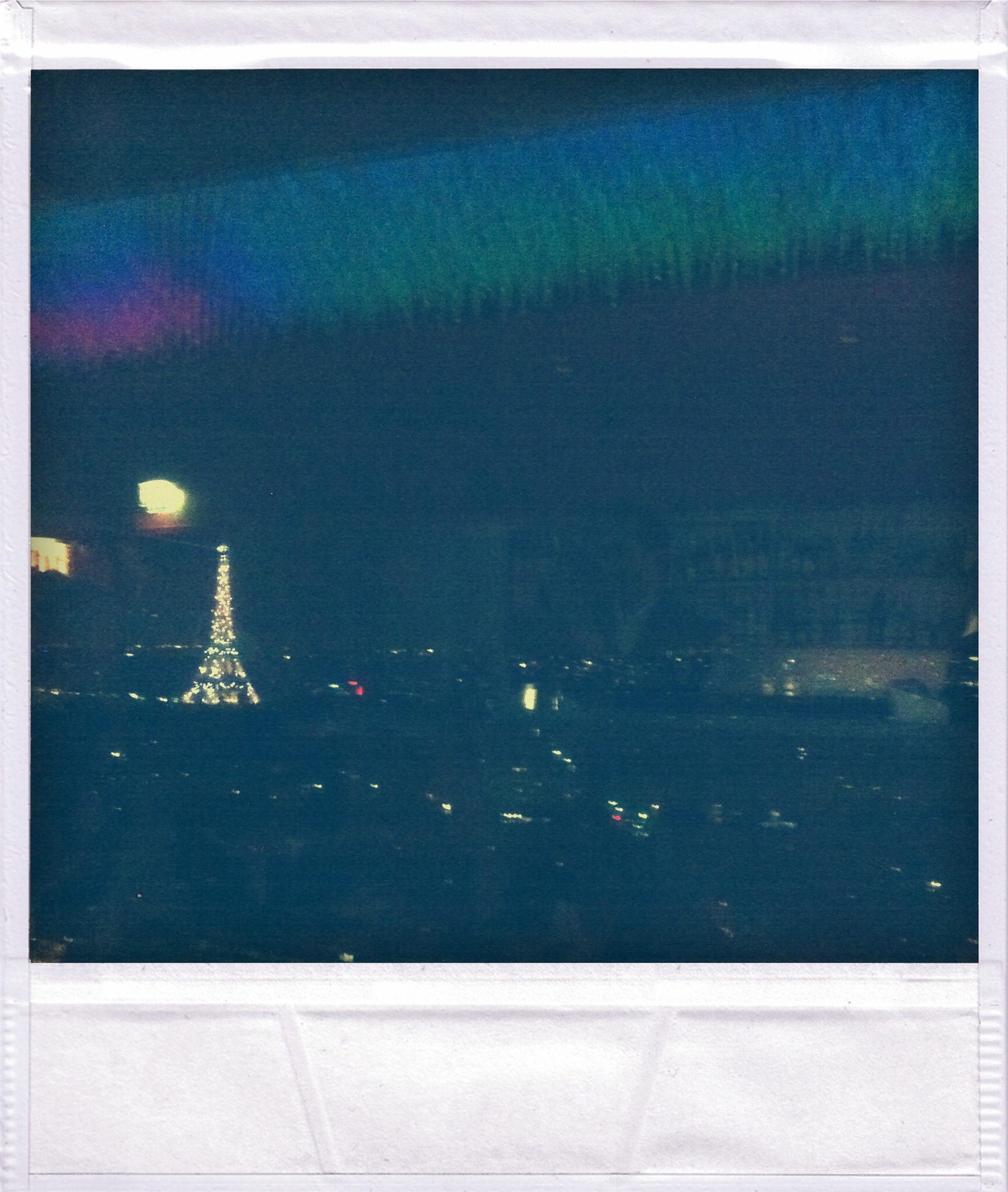 Après une course folle de 33 étages en ascenseur et quelques marches supplémentaires, je me suis retrouvée assise pile face à la « Dame de Fer ». La photo prise par l’iPhone peut donner une impression d’éloignement mais ce n’est absolument pas le cas. Malgré cela, je suis rapidement tombée de mon tabouret!