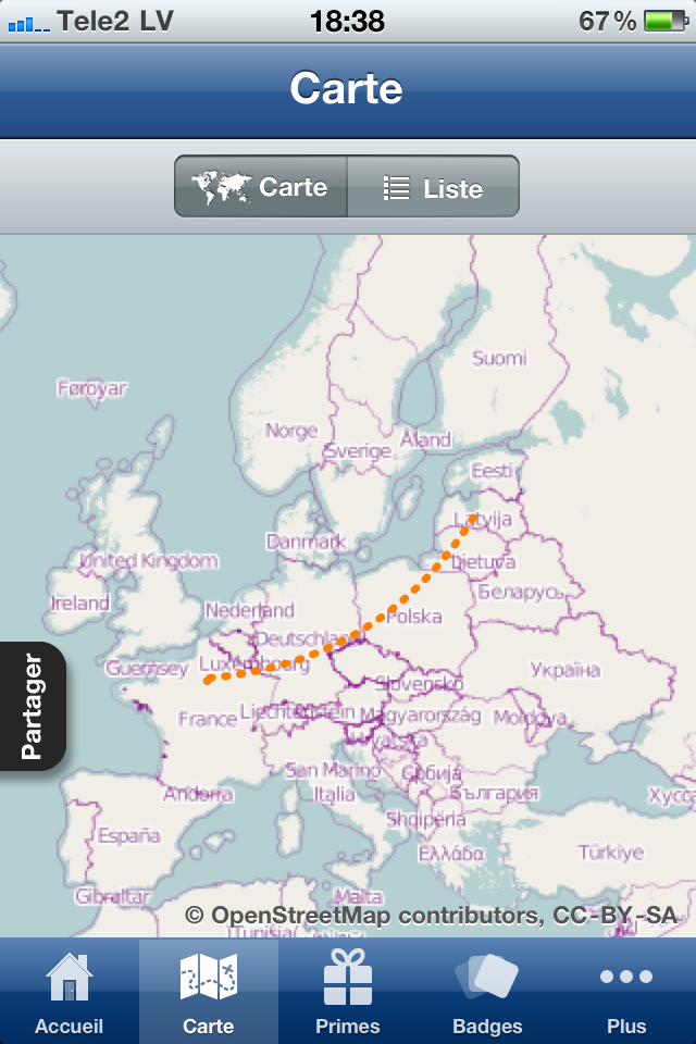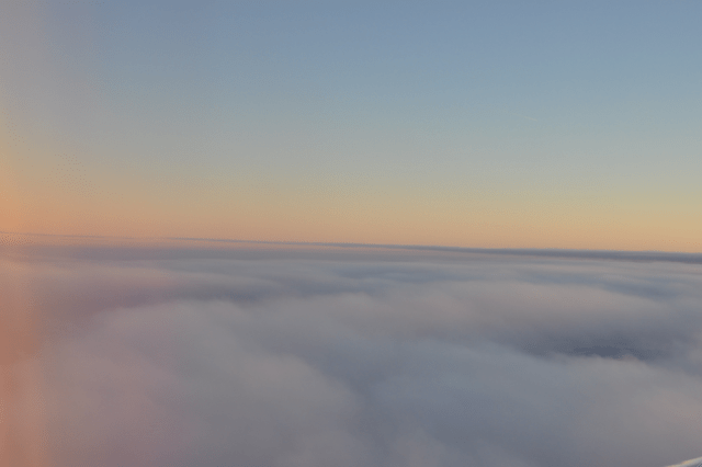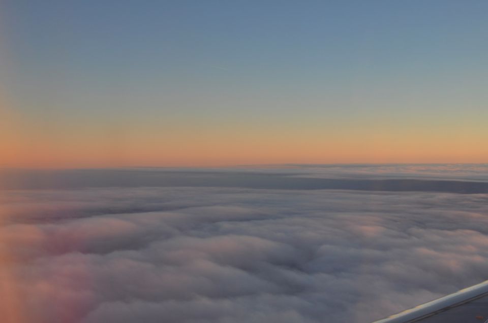 Photos: Alerte à Liège // 1. et 2. Application Samsonite Travel Miles (disponible sur iTunes) comptabilisant mon voyage à Riga // 3. à 5. Océan de nuages à travers le hublot