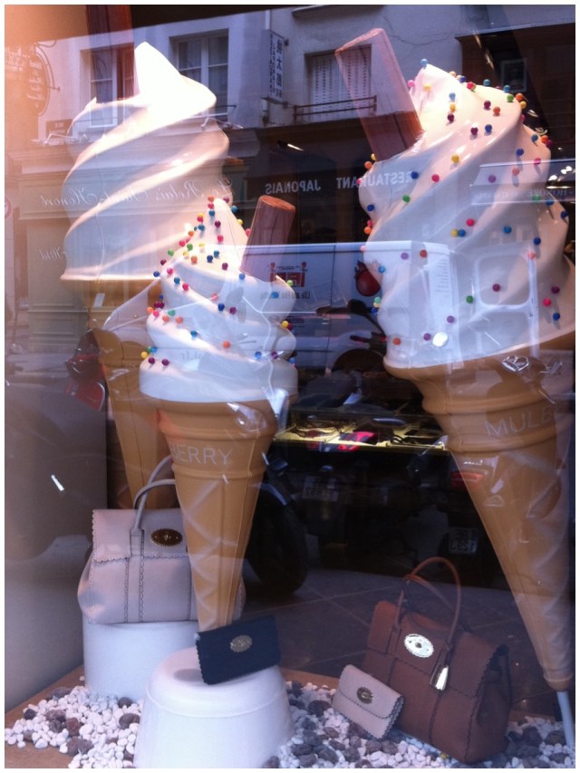 J’adooore la vitrine de Mulberry (porte bien le nom de lèche-vitrine la haha 😉 ). Sinon les escarpins Furla sont ultra beaux ! Bisous 🙂