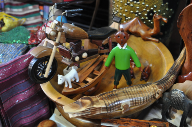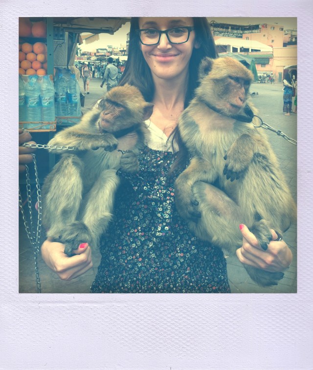 Marrakech, ville impériale et cité des jardins (riads), est constituée de deux parties: la Médina, la partie la plus ancienne de la ville, entourée de ses remparts, et la ville récente qui continue à s’agrandir vers sa périphérie. Les souks, ces innombrables échoppes (photo 35) où s’affairent les artisans locaux trouvent refuge dans les ruelles escarpées de la Médina, à deux pas de place Jamâa El Fna. Tout s’y déniche: sandales en cuir sur mesure, épices, pâtisseries locales, foulards, ceintures, huile d’argan ou encore figurines « façon » Tintin (photo 34) ou même ballons de basket « Louis Vuitton » (photo 36, hallucinant!). Pour manger dans le coin ou boire un thé glacé (photo 30) je vous recommande deux adresses où aller les yeux fermés (quoi que ce serait dommage pour la vue!): le Café des Epices et sa petite soeur la Terrasse des Epices. Autre établissement réputé mais que je n’ai hélas pas eu le temps de tester, le Café Arabe.