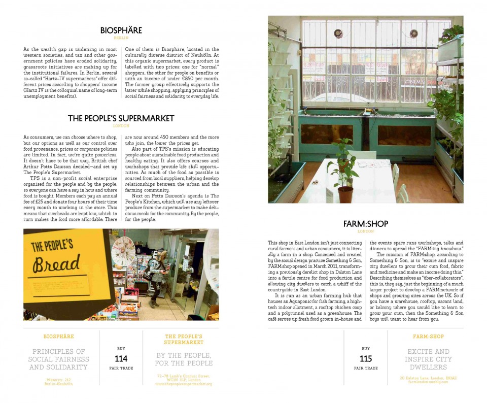 Aujourd’hui, 9 mois plus tard, le bébé est sorti de presse et porte le nom de « A Smart Guide To Utopia – 111 inspiring ideas for a better city« . Un superbe ouvrage en anglais (oui, oui, j’ai rédigé en anglais!), richement illustré, partagé en 5 chapitres: « Live« , « Eat & Drink« , « Buy« , « Play » et « Work« . Un projet hautement qualitatif sur lequel je suis très fière d’avoir travaillé…