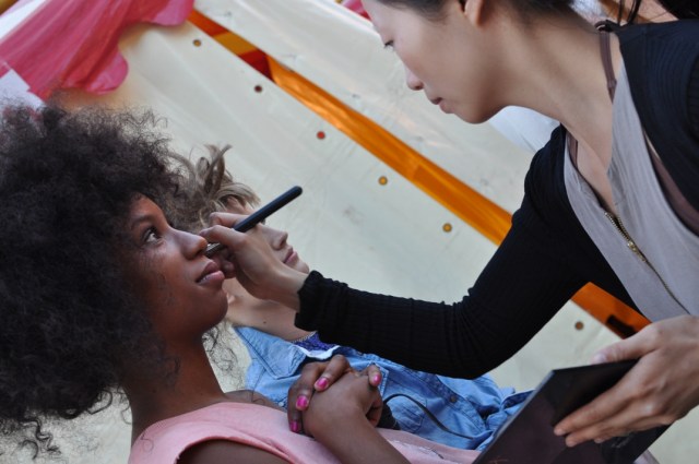 L’énergie qui se dégage des backstage avant un défilé est toujours quelque chose d’électrisant… Quand cela se passe au beau milieu d’un bois de la banlieue d’Amsterdam, sous le soleil couchant, c’est d’autant plus magique. Dans un mois de juin qui a connu 21 jours de pluie (un record!), la marque Garcia Jeans a vraiment eu de la chance d’avoir une chaude soirée estivale pour présenter en plein air sa collection printemps-été 2013. Vous m’accompagnez dans les coulisses? Une façon bien plus décontractée de découvrir les pièces de la saison prochaine, non?
