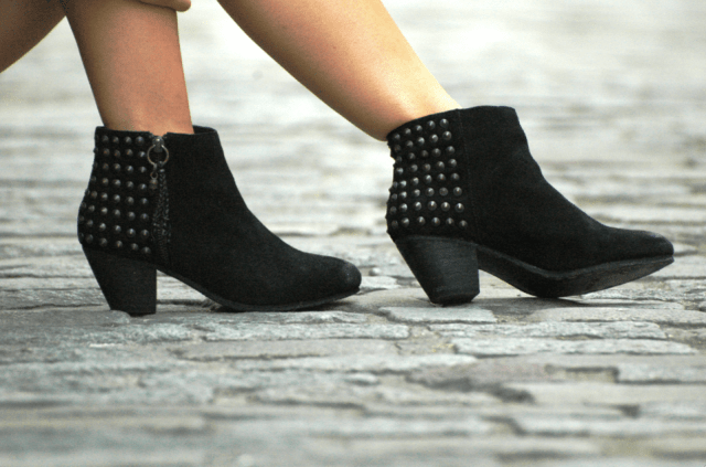 Depuis longtemps, je craque sur les bikers cloutées de la marque Ash. En surfant sur le net, j’avais repéré un modèle encore plus canon chez Strategia. Hélas épuisées! Mais cela aura eu l’avantage de me faire découvrir Basalt, un chouette e-shop français avec un large choix de très jolies marques de chaussures (Sam Edelman, Anniel, Serafini, Minnetonka, etc.). Voilà comment je suis tombée sur les nouvelles bottines Nevada signées Ash. Du daim, des clous, un talon raisonnable de 5 cm, facile à assortir et plus féminines que des bikers: pile ce qu’il me fallait! Apprêtez-vous à beaucoup les revoir sur le blog…