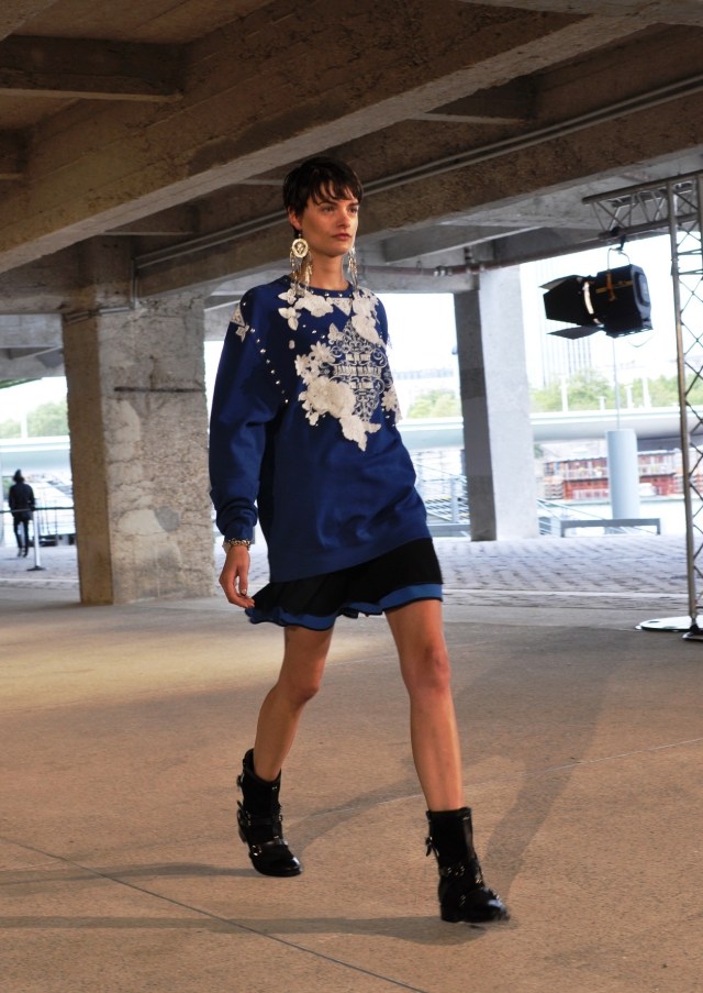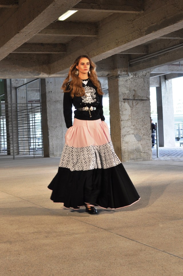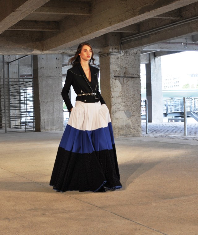 Le travail d’Alexis Mabille m’avait principalement bluffée la saison passée, en sortant des sentiers battus, en endossant brillamment son rôle de Directeur Artistique du « Cointreau Privé« . Un superbe bar éphémère que j’avais découvert en afterparty de son défilé FW12. Hier, j’ai eu le plaisir d’assister à son défilé SS13. Une collection très féminine, donnant au vichy des années Bardot une deuxième jeunesse mais en faisant aussi la part belle aux pièces plus sobres. Le noir, sublimé par des matières vaporeuses, était ainsi aussi à l’honneur, donnant à la femme une allure sculpturale (My oh My, l’avant-dernière photo!). Si je ne devais retenir que deux pièces: le sweat bleu électrique et les longues jupes de « bohémienne » tricolores. Very prêt-à-porter!