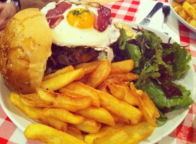 Ah merde, mes plats préférés (mmmmm les bons burgers). Je suis constamment à la recherche de burgers « comme là bas)… mais à Liège ou alentours évidemment. Too bad!