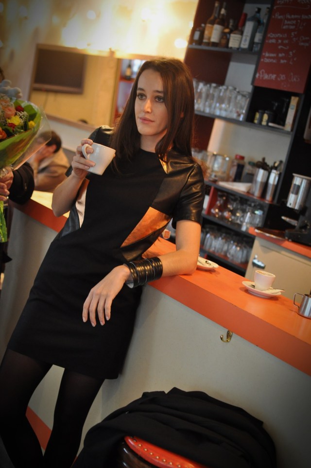 Personnellement, j’ai complètement craqué pour son travail et plus particulièrement sur cette robe à la coupe graphiquela douceur et le chic de la laine épousent la force et le côté rock du cuir. Du cuir ultra souple qui se décline en noir et en bronze. Une très belle pièce de l’automne-hiver 2012, reflet de l’élégance et de la maturité de la prochaine collection que j’ai eu le plaisir de découvrir au Showroom Éphémère de la Maison du Prêt à Porter. Cette collection printemps-été 2013 s’inscrit dans une opposition radicale d’un noir profond et d’un ivoire lumineux. Un talent que j’aurai beaucoup de plaisir à suivre de très près!