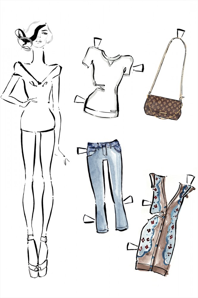 Cette fois-ci, c’est au tour de Marc Jacobs de nous inviter à prendre nos ciseaux pour habiller nos silhouettes en papier des plus jolies pièces de la collection SS13 et des pièces mythiques de la collection Ready-to-Wear de la griffe Louis Vuitton. De jolies illustrations, pleine d’élégance, signées Kerrie Hess. Au total, cinq planches de paper dolls LV sont proposées. Voilà de quoi jouer (ou faire jouer) à la styliste tout le week-end…