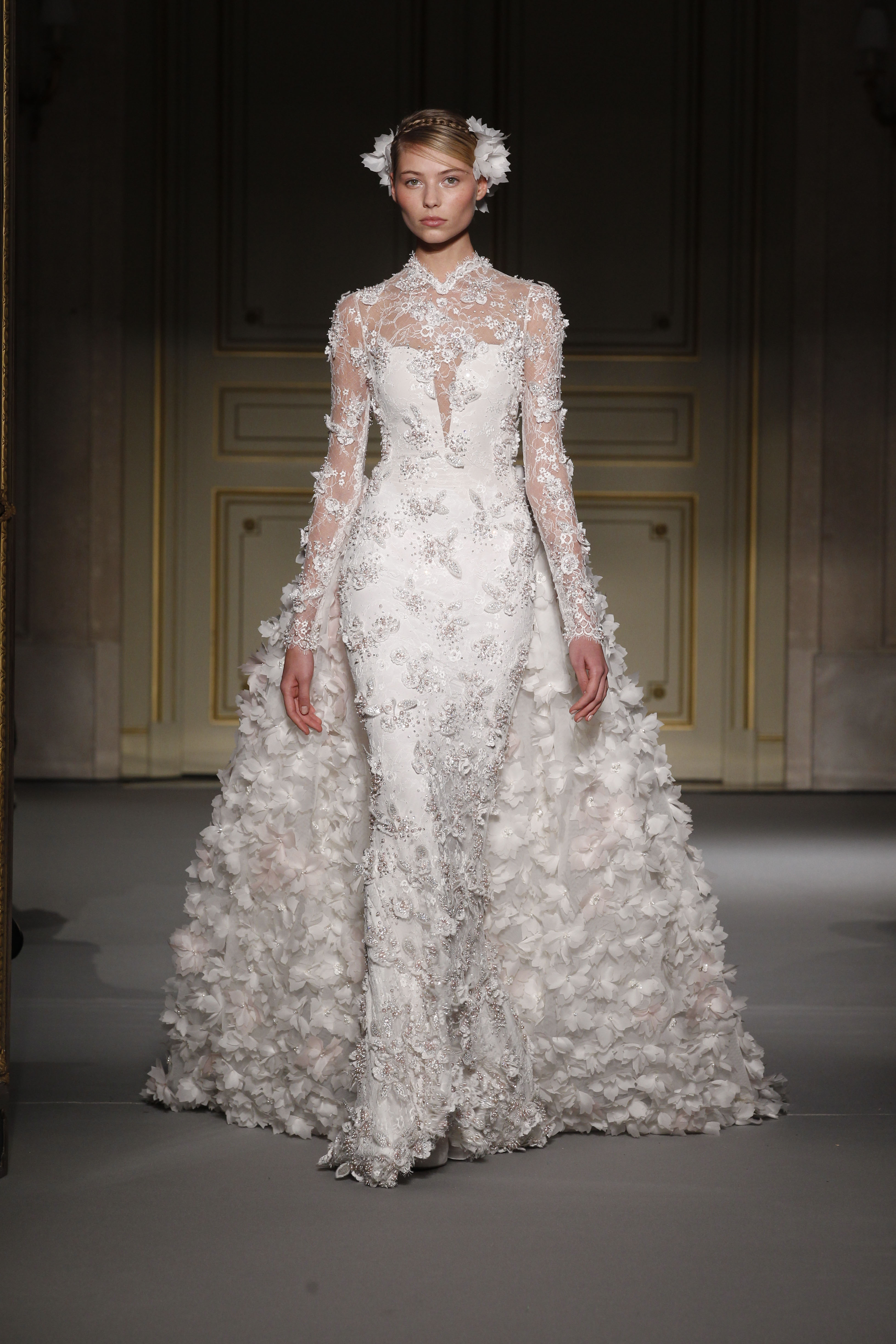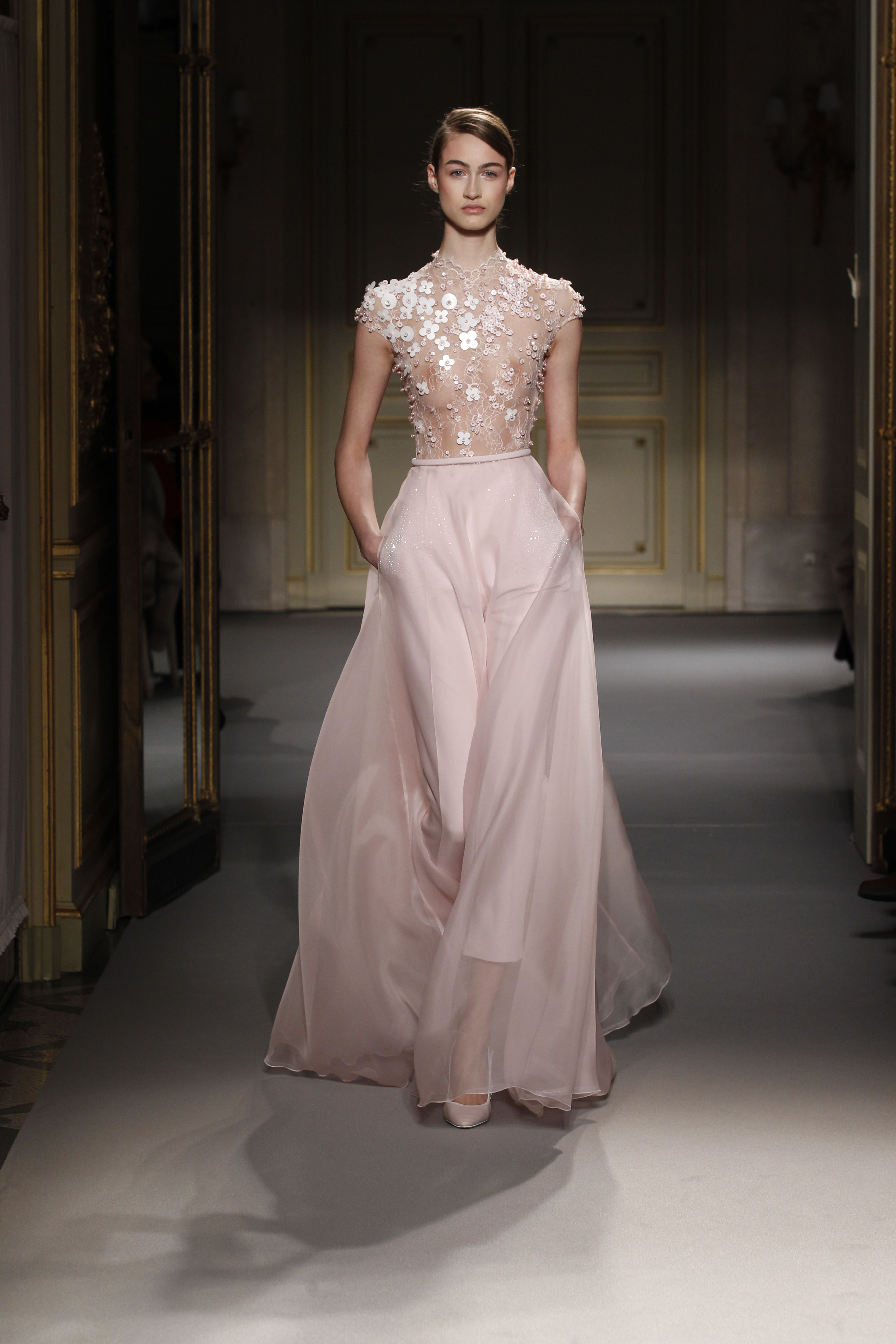 Le couturier a, une fois de plus, choisi le palace Le Meurice pour présenter sa collection printemps-été 2013. Pour la saison à venir, la femme Georges Hobeika a parcouru les quatre coins du monde pour propager un message de paix illuminé par une promesse d’espoir. Un fil conducteur qui imprègnent le vestiaire par des nuances fraîches et douces de bleu, rose, blanc et gris, alliées à des teintes vives de vert et de fuchsia. Le crêpe georgette et organza, ornées de cristaux, de paillettes florales et de perles précieuses, ajoutent une touche de légèreté très raffinée à la collection.