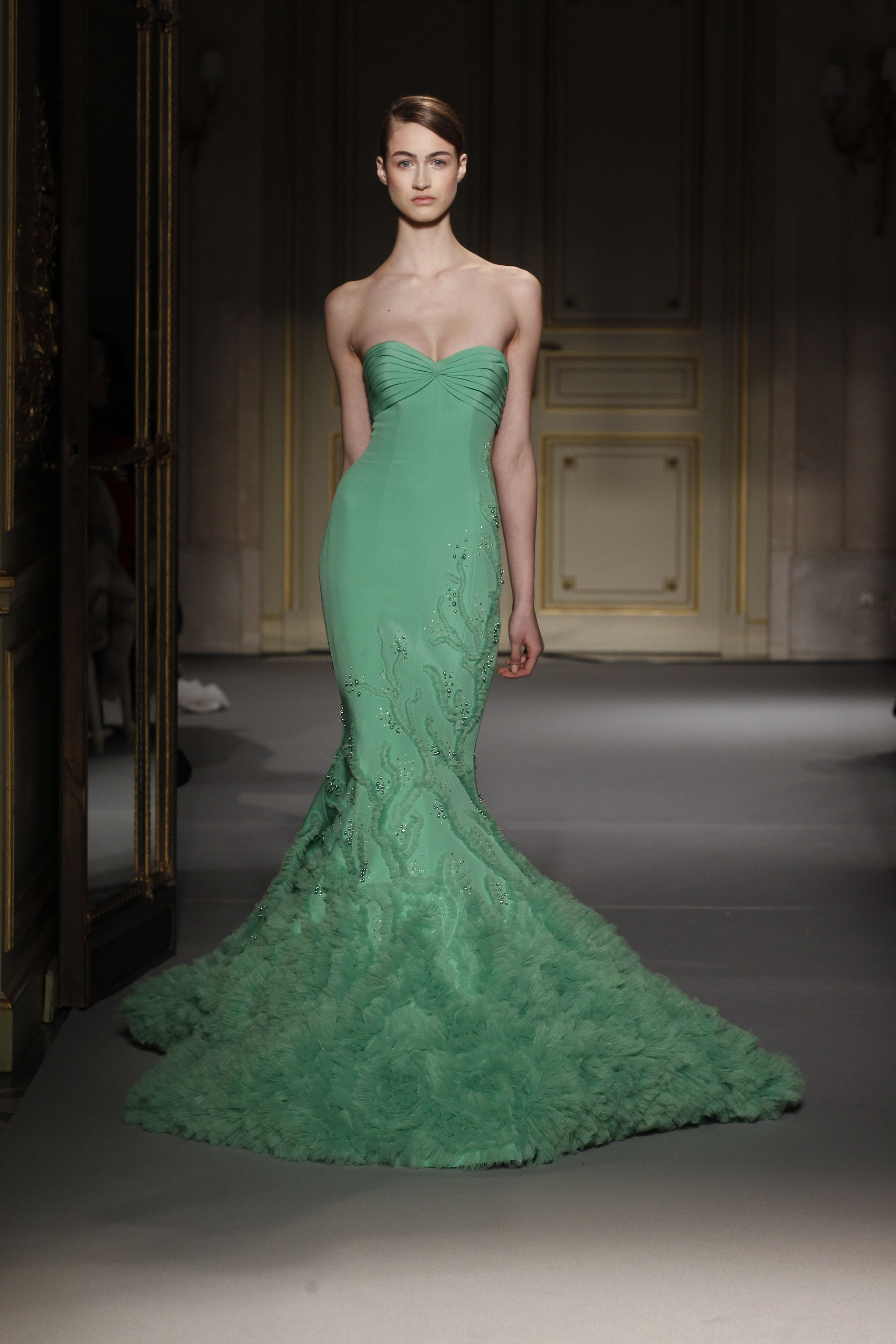 De toutes les robes, plus belles les unes que les autres, je dois avouer un énorme coup de coeur pour celle de « sirène », au vert chatoyant (3ème photo ci-dessous). Le col Claudine, très sage, sur un haut transparent qui lui l’est (beaucoup) moins: une idée à retenir (4ème photo ci-dessous). Alors, quelles célébrités pourraient donc bien les choisir pour un Red Carpet ultra glamour? Wait and see!