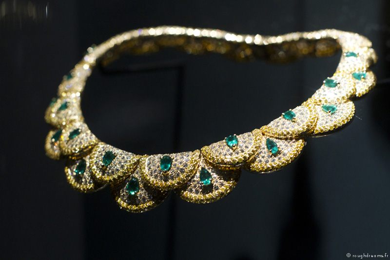 Samedi passé, j’ai été invitée par MasterCard à la soirée de clôture de la sublime exposition « Van Cleef & Arpels. L’art de la haute joaillerie » au Musée des Arts Décoratifs. Pour l’occasion, la nef du musée de la rue de Rivoli était entièrement privatisée pour une poignée de privilégiés dans le cadre des évènements « Priceless Paris« . Visiter de nuit ce mythique espace attenant au Louvre, remonter la ligne du temps au rythme de 500 inestimables créations de la Maison Van Cleef & Arpels (la parure de fiançailles de Grace Kelly, la couronne de Farah Diba, Le Serti Mystérieux, …) et bénéficier d’explications à la carte, ça n’a pas de prix! Saviez-vous, par exemple, que la bijouterie est le travail du métal tandis que la joaillerie est la mise en valeur de la pierre? Ou encore qu’après la deuxième guerre mondiale, les pierres précieuses ne circulant plus en Europe, les joailliers se sont concentrés sur l’or jaune?
