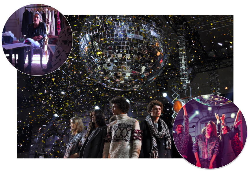 Le concept de la soirée? Complètement dingue! Parvenir à recréer le Paris du début des années 1990, période si chère à Isabel Marant et à laquelle la Parisienne lança sa marque éponyme. Nous avons donc été plongés dans une ville, dans la ville. Cabine téléphonique, mât jaune du Métro, borne de taxi, fontaine Wallace, bancs publics, boîte aux lettres (oui, oui, avec des cartes postales pré-timbrées à envoyer à ses proches!), façades d’immeubles haussmanniens, … Absolument rien n’a été laissé au hasard! Paris (la vraie!) aurait pu être en état de siège, nous aurions eu de quoi survivre quelques heures entre la brasserie et ses plats 100% french, l’épicerie de quartier avec sucreries à gogo (voire fruits et légumes pour les plus raisonnables) et champagne* à volonté, le glacier et ses succulents cornets, la crêperie ou encore le snack offrant hot dog ou falafels. Même topo pour les lieux de fête avec différents clubs (inattendu, hallucinant!) où faire la fête et notamment La Main Jaune, boîte mythique de l’époque avec patins à roulettes obligatoires où, souvenez-vous, Vic (Sophie Marceau) embrassa fougueusement son père dans le film La Boum. A la sono, Ariel Wizman, Melle Mel de Grandmaster Flash sans oublier le grand Brodinski. Pas étonnant qu’Isabel Marant ait dansé, tout sourire au milieu de ses invités, jusqu’au bout de sa boum au Studio 5!