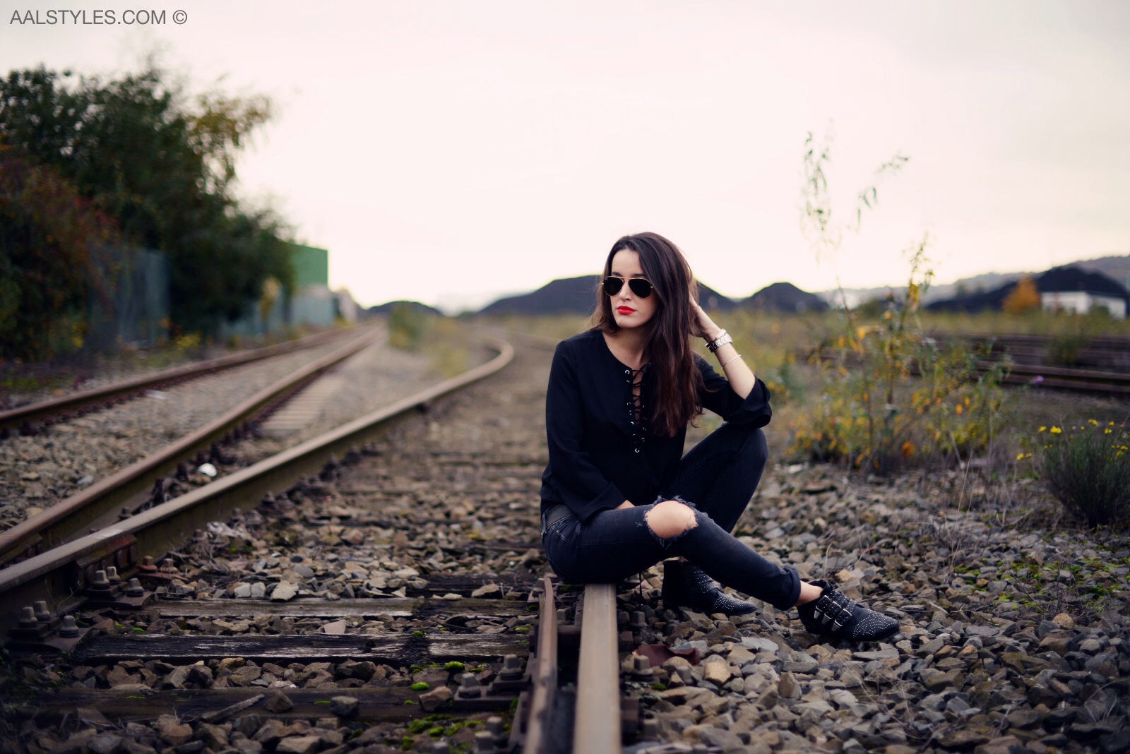 Photos: Alerte à Liège // Blouse à lacet: Tally Weijl – Jeans: H&M – Maquillage: Estée Lauder.