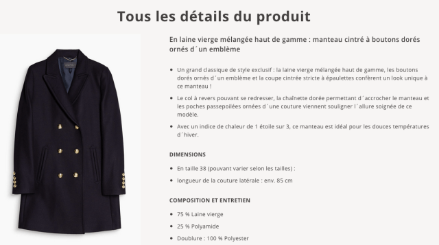En surfant sur Instagram, je suis tombée il y a quelques temps sur la blogueuse Mija Mija avec son manteau Isabel Marant. Depuis toujours, j’ai un sacré coup de cœur pour les manteaux en laine de la créatrice parisienne. Un des freins à l’achat ? Leur forme boyish très oversize dont j’aurais peur de me lasser au quotidien, même si cela reste très pratique pour s’emmitoufler sous les couches par grand froid. Par hasard, en approfondissant mes recherches, j’ai découvert, dans le guide des manteaux et des blousons de la saison automne-hiver 2017 signé Esprit, un modèle qui résume bien le manteau idéal à mes yeux : laine vierge mélangée de qualité supérieure, coupe élégante et classique, boutons blason dorés pour la petite touche de lumière.