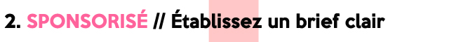 A contrario, pour une campagne sponsorisée, un brief clair est un élément indispensable pour atteindre le résultat que vous escomptez: timing précis des posts, moodboards, mots-clés à utiliser, hashtag(s), tag(s), angle, rémunération, etc. Ce brief est à exposer à l’influenceur brièvement dans le premier mail de contact et en détail une fois que ce dernier aura accepté de prendre part au projet. Il servira aussi de base à la rédaction du paragraphe « rendu attendu » du contrat. J’y reviendrai ci-dessous.
