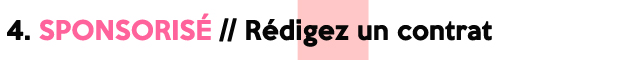 Dans le cas d’une campagne sponsorisée, c’est-à-dire où l’influenceur sera payé pour créer du contenu à diffuser sur son blog et/ou sur ses réseaux sociaux, un contrat est un prérequis. Anticipez et préparez-le en avance. Il devra être approuvé par les deux parties une fois que le brief, dont je vous parlais plus haut, sera validé. En aucun cas, la campagne ne peut démarrer sans qu’il soit signé. Plus il sera précis, moins il y aura de mauvaises surprises à l’arrivée, pour la marque, comme pour l’influenceur.