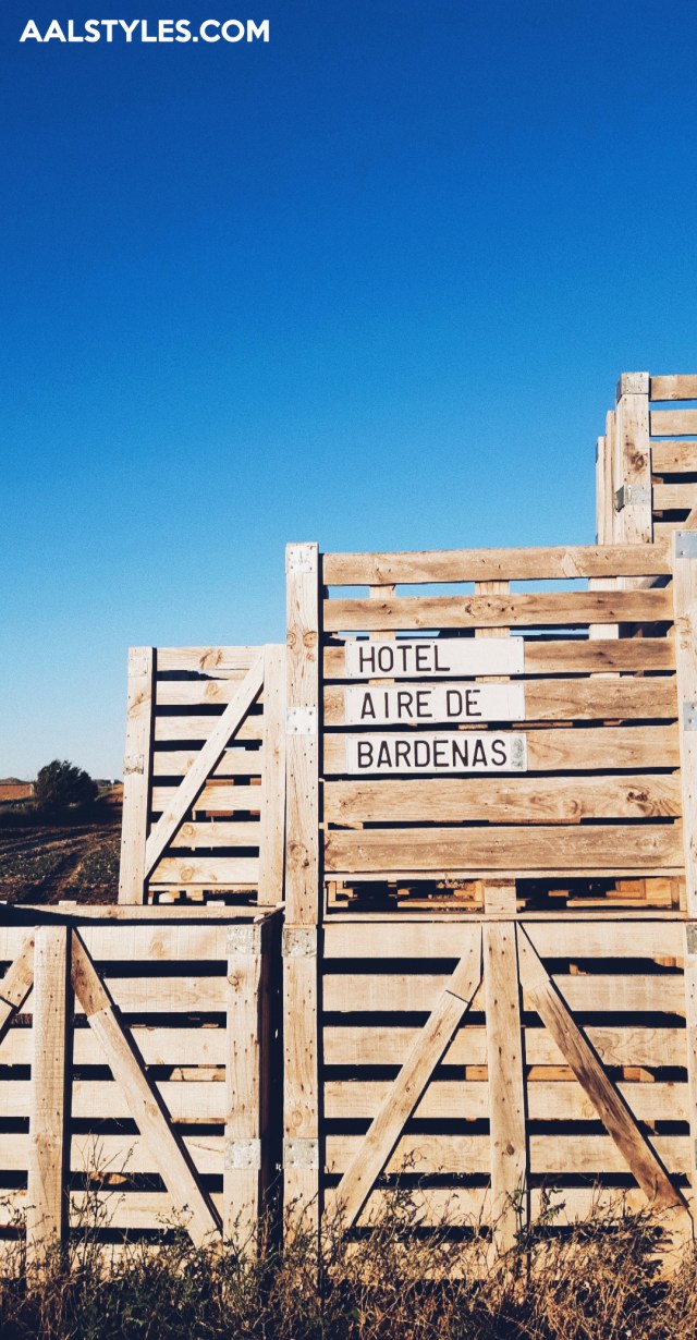 Si vous pensez pouvoir dormir dans le parc naturel en lui-même, je dois hélas briser vos rêves. Des gardes tournent en permanence sur le site et y dormir est interdit. La ville toute proche de Tudela offre un choix d’hôtels (dont le Bed4U) et de Airbnb. Connu pour avoir fait le tour d’Instagram grâce à sa photogénie et son côté insolite, l’Hotel Aire de Bardenas, en plein milieu de nulle part, a clairement de quoi faire rêver…