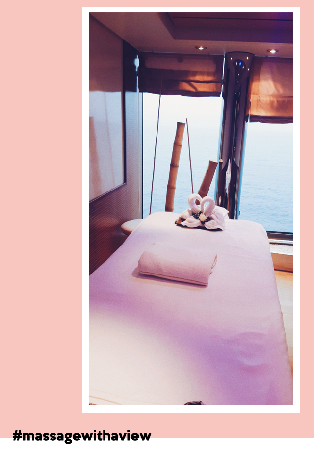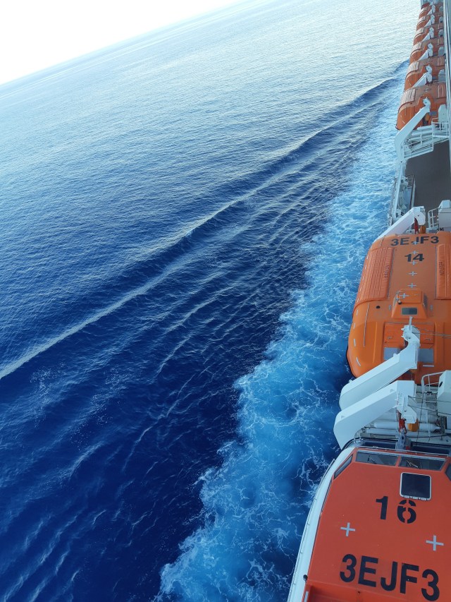 Embarquer à bord d’un navire de croisière, c’est embarquer avec 3000 autres passagers et 1000 membres d’équipage. Même si l’agencement des navires permet à ses hôtes de ne pas trop ressentir un effet de masse, cela en fait du monde! Pour quelqu’un qui aime le calme, cela peut avoir un côté anxiogène, surtout si vous êtes agoraphobe. Certes, les cabines sont hyper bien insonorisées donc on n’entend aucun bruit extérieur dans sa chambre mais les espaces communs (dont les piscines) grouillent toujours, plus ou moins de monde. C’est pour cela que j’adorais particulièrement le calme de mon balcon, pour admirer la mer loin de l’effervescence, à mon rythme, me sentir in the middle of nowhere. Si vous recherchez un séjour gipsy et bohème, intimiste façon Casa Cook, vous risquez de ne pas trouver votre bonheur sur un paquebot. Idem si les bateaux de croisière et leur impact environnemental vous hérissent les poils.