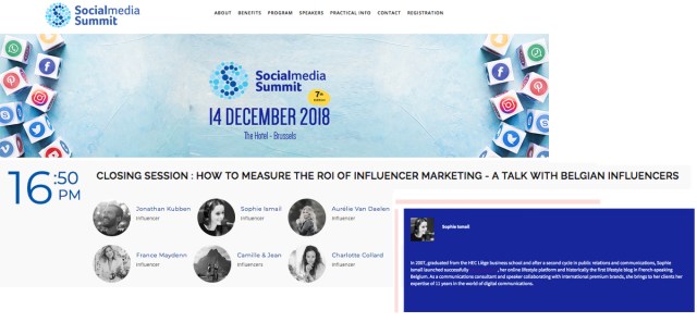 Comment mesurer le ROI du marketing d’influence ? Voici une question légitime que la plupart des marketeurs se posent avant (c’est mieux) ou pendant/après (un peu tard, hélas, pour définir KPI’s) la mise en place d’une campagne d’influence. Les organisateurs du Social Media Summit, rendez-vous des acteurs Social Media en Belgique, l’ont bien compris et ont fait de cette question le sujet d’un de leurs workshops de l’édition 2018. Au sein d’un panel d’influenceurs belges, j’aurai le plaisir d’être speaker et donc de prendre la parole et de donner mon avis, ce vendredi, sur cette thématique. Tout au long de l’après-midi, se succéderont plusieurs sessions données par des experts dans le domaine des réseaux sociaux. Le tout dans le prestigieux cadre de The Hotel, en plein centre de Bruxelles. Si vous n’avez pas acheté votre place et que le sujet vous intéresse, vous pouvez toujours suivre les différents intervenants sur les réseaux sociaux où ils partageront certainement un compte-rendu de l’évènement. Pour ça, un hashtag: #SMSBrussels18 !