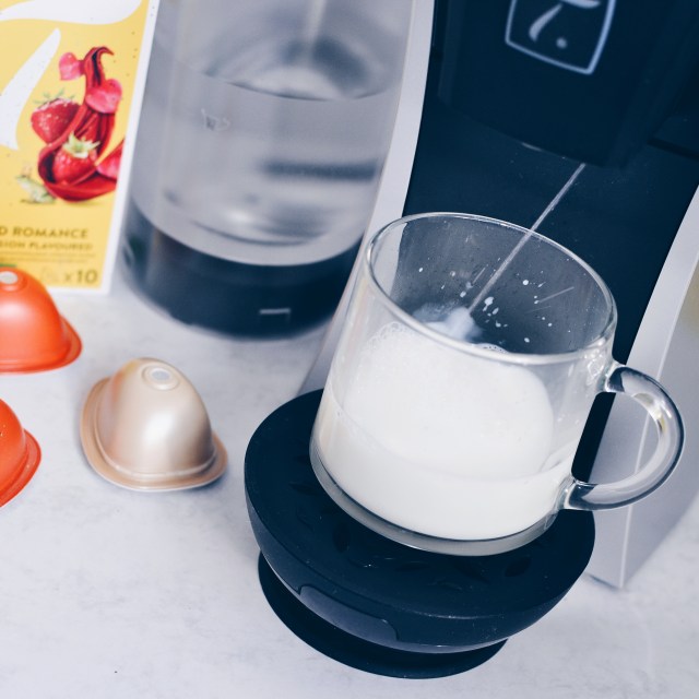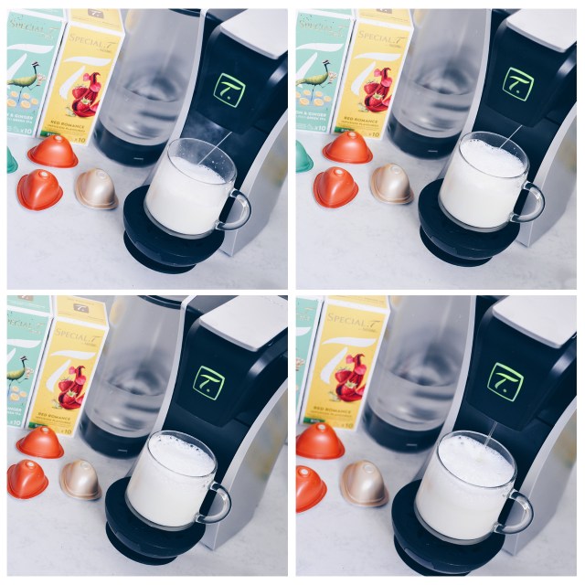 Venons-en à ce qui m’a fait craquer! La fonction Latte. Avant de prendre possession de la Master.T, je ne visualisais pas bien comment le lait pourrait être onctueux. Puis, j’ai testé. Comment ça marche? Un doseur livré avec la machine permet de mettre la quantité idéale de lait dans le fond de sa tasse, également fournie. Au choix parmi les fonctions : petite ou grande tasse (et latte, bien évidemment). À la pression du bouton, la machine à thé envoie un jet puissant qui fait, en quelque sorte, mousser le lait. Impressionnant! Ensuite, le processus complet s’enclenche jusqu’à l’obtention de la tasse parfaite de cappuccino thé ou Chaï Latte. Vous l’aurez compris, je suis conquise! Et, évidemment, si vous avez la moindre question avant de vous laisser tenter, posez-la moi. xx