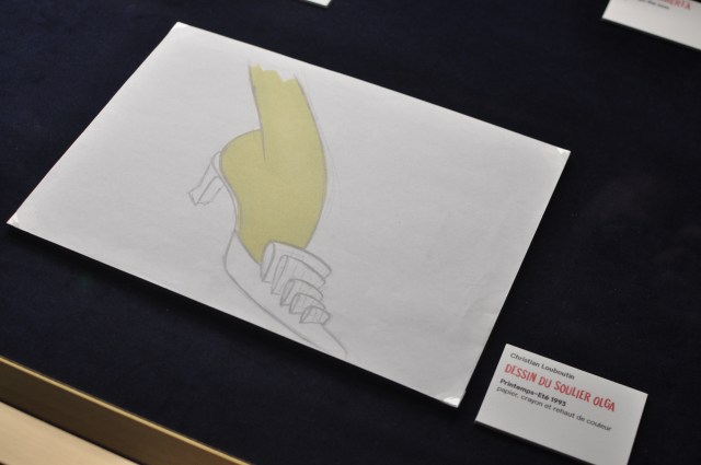 Né dans le 12ème arrondissement de Paris, Christian Louboutin confie être fasciné dès l’adolescence par la beauté architecturale et la richesse ornementale du Palais de la Porte Dorée. Son premier dessin d’escarpin, c’est là que le jeune Christian le découvre : le règlement, sous forme d’un pictogramme représentant un escarpin barré, interdit de marcher sur les parquets d’époque chaussées de talons aiguilles. Cette image sera plus tard l’inspiration du soulier Pigalle. Le mythe Louboutin est en marche. Car oui, on peut réellement parler de mythe pour celui qui a fait de son nom propre un nom commun : des louboutins. Et ce n’est pas le « Pop Corridor », espace de l’exposition dédié aux innombrables célébrités de la musique et du cinéma, personnalités amies, qui témoignent d’un souvenir autour du soulier de la Maison qui pourrait le contredire.