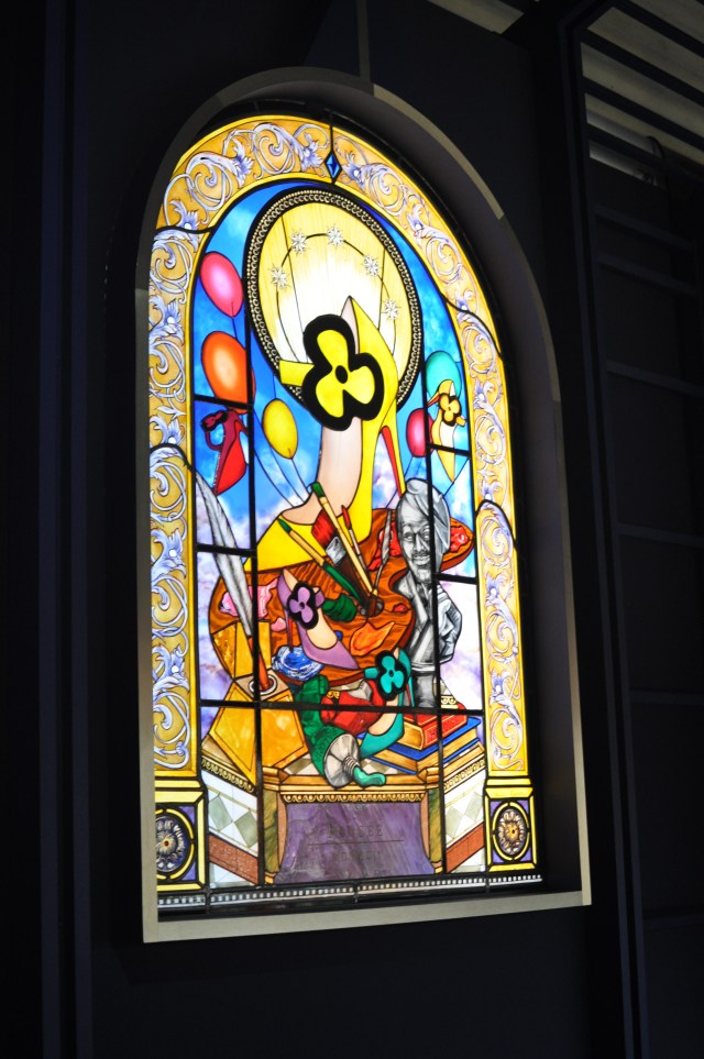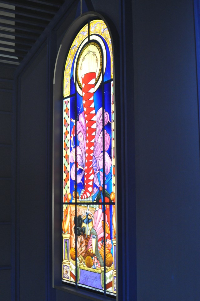 Comme l’a souligné le créateur français mondialement connu, cette exposition est une célébration de son travail, pas une rétrospective. Elle a également été voulue comme un hommage aux artisans et aux métiers d’art chers au coeur du créateur de souliers et « sans qui son travail ne serait pas ce qu’il est ». « Il y a une forme de pointe d’iceberg. Moi, la pointe de mon iceberg, c’est dessiner des souliers. Mais avant ça, il y a un solide ancrage sur l’amour de beaucoup de choses et le respect de beaucoup de gens. Et tout ça, ce n’est pas ce qu’on voit. C’est pour ça que c’était important et désirable, dans ma ville, de montrer tout ça ». Ainsi, la première salle fait la part belle à de somptueux vitraux dessinés pour l’exposition et réalisés par la Maison du Vitrail, sous la direction du maître verrier Emmanuelle Andrieux autour des huit éléments constitutifs du travail du créateur : la Parisienne, le Spectacle, la Couture, l’Art, le Voyage, l’Artisanat, la Sexualité et l’Innovation. Plus loin, ce sont ses projets avec -en autres- David Lynch (la salle « Fétichisme », déconseillée au moins de 16 ans) ou avec l’artiste néo-zélandaise d’origine maorie Lisa Reihana qui régalent les visiteurs.