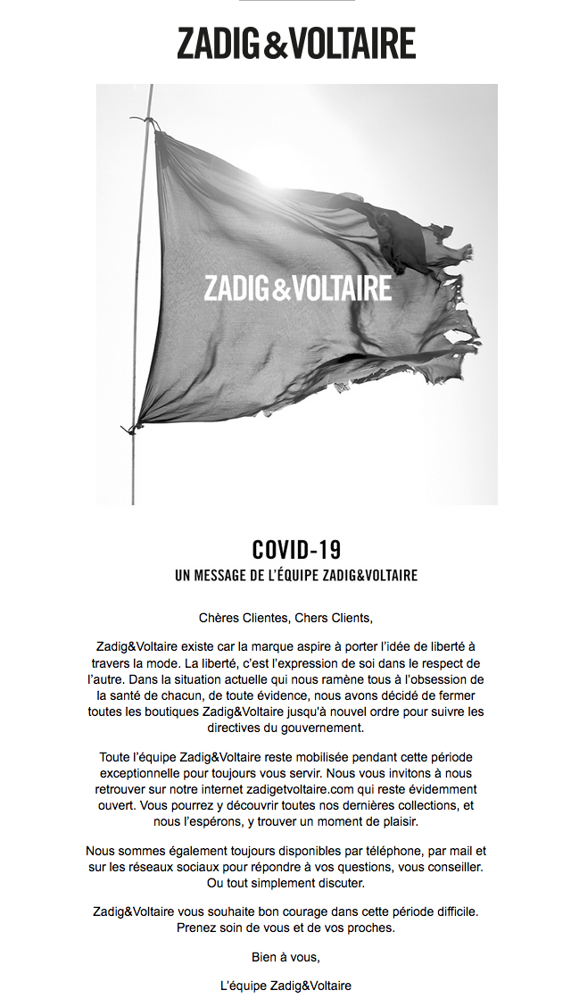 - si vous avez effectivement les moyens humains de répondre, réorientez vers vos réseaux sociaux pour même, comme le précise l’équipe Zadig&Voltaire, « juste discuter » si le besoin s’en fait sentir ❤