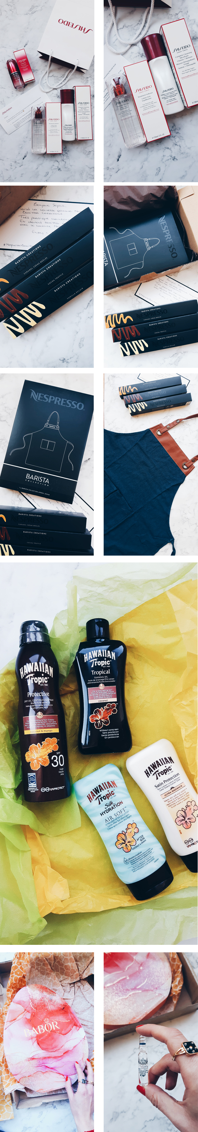 Photos: aalstyles.com // Exemples de colis reçus durant la période (pré)-confinement (Shiseido, Nespresso, Babor et Hawaiian Tropic) // Suivez-moi sur Instagram.