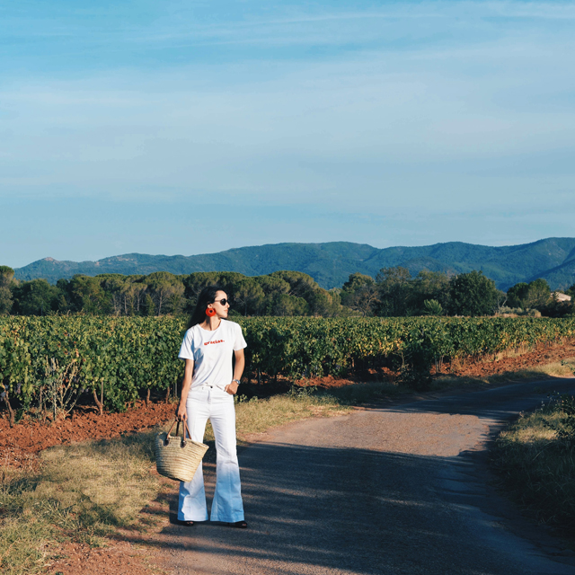 Photos: aalstyles.com // T-shirt : Grace and Mila – Pantalon blanc à pattes d’éléphant : H&M // Domaine viticole en conversion vers l’agriculture biologique : Château Saint Roux Le Luc-Le Cannet des Maures // Suivez-moi sur Instagram.