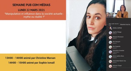 Hier, j’ai eu le plaisir d’être intervenante aux conférences inaugurales de la « Semaine Pub Com’ Médias 2021 » organisée par les étudiants de l’ISEG campus Lyon, en distanciel. Déjà intervenante à l’ISEG campus Strasbourg pour un module de 20h autour des « Stratégies et outils d’influence » destiné aux étudiants de Master, j’ai pu cette fois, dans un format court … Lire la suite →